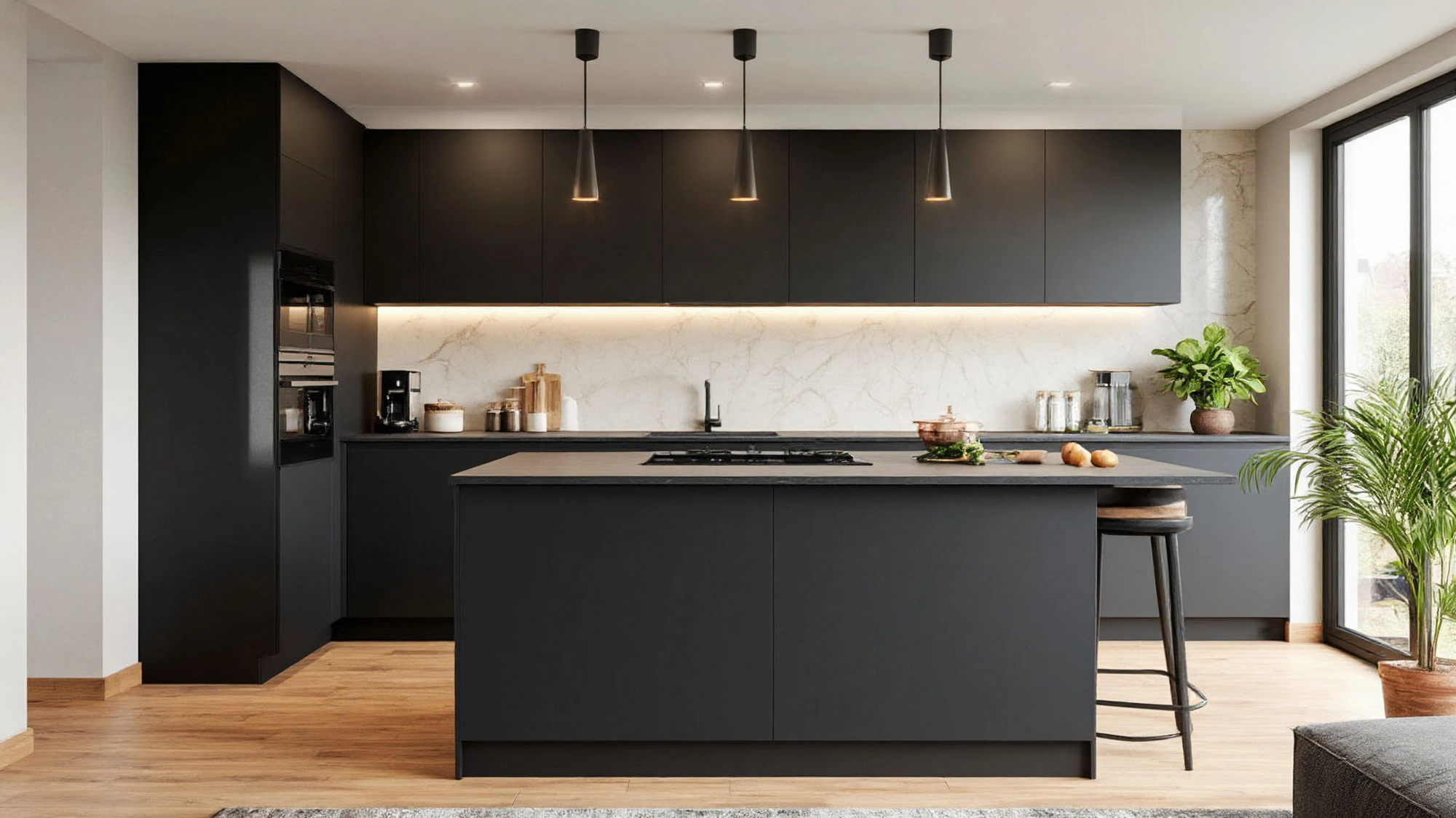 Угловая планировка открывает новые возможности в организации пространства. Она позволяет разместить все необходимые зоны так, чтобы они были под рукой: плита, мойка и рабочая поверхность образуют удобный треугольник, сокращая лишние движения во время готовки. При этом остаётся достаточно места для хранения — вместительные шкафы и продуманные системы делают кухню максимально удобной. Внутри скрываются современные механизмы: плавные доводчики, выдвижные корзины, умные системы организации, которые помогают использовать каждый сантиметр пространства. Благодаря этому кухня выглядит аккуратно и легко поддерживается в порядке.