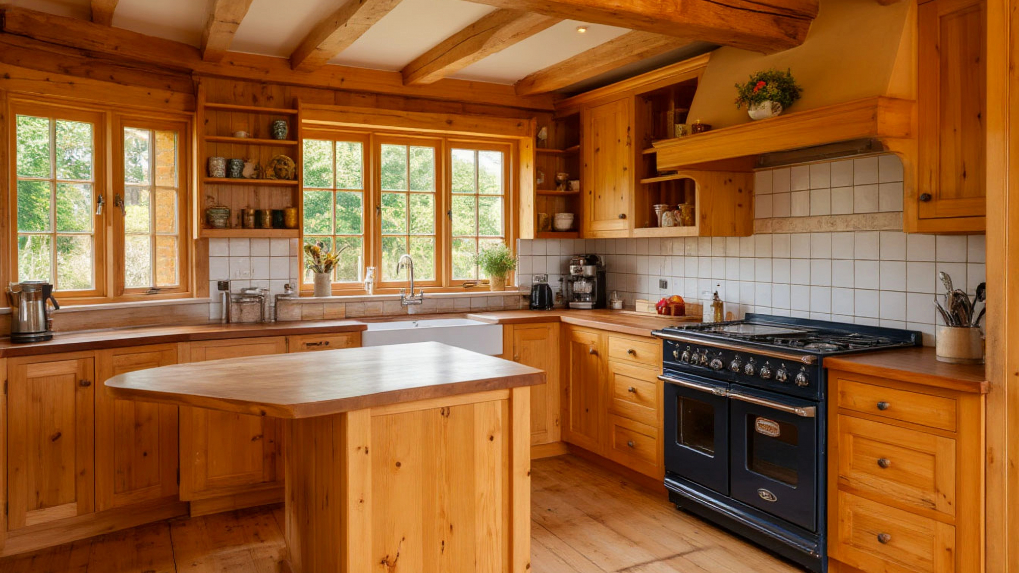 Материалы фасадов, имитирующие дерево, являются одновременно эстетичными и практичными. Они устойчивы к механическим повреждениям, влаге и перепадам температуры, что делает кухню долговечной и легкой в уходе. Приятная текстура и естественный цвет фасадов создают ощущение теплоты, уюта и близости к природе, что особенно важно для интерьеров в стиле дача. Светоотражающие поверхности визуально увеличивают пространство и придают комнате легкость, даже если кухня расположена в небольшой квартире.