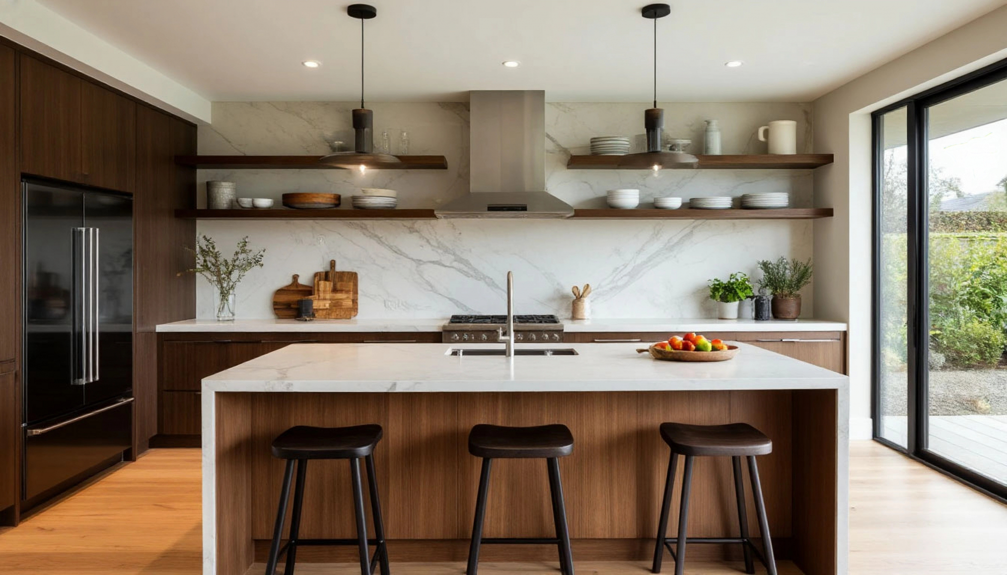 Материалы, используемые компанией "Мебель Нашел", подчёркивают высокий уровень исполнения. Прочные столешницы, стойкие к влаге покрытия, лёгкие алюминиевые конструкции, экологичные панели — всё выбрано с любовью к долговечности и уважением к эстетике. Это кухня, которая не устареет. Её минимализм вне времени.