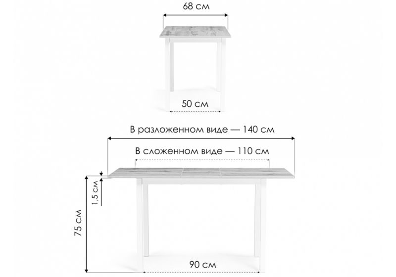 Длина стола в разложенном виде: 140 см.