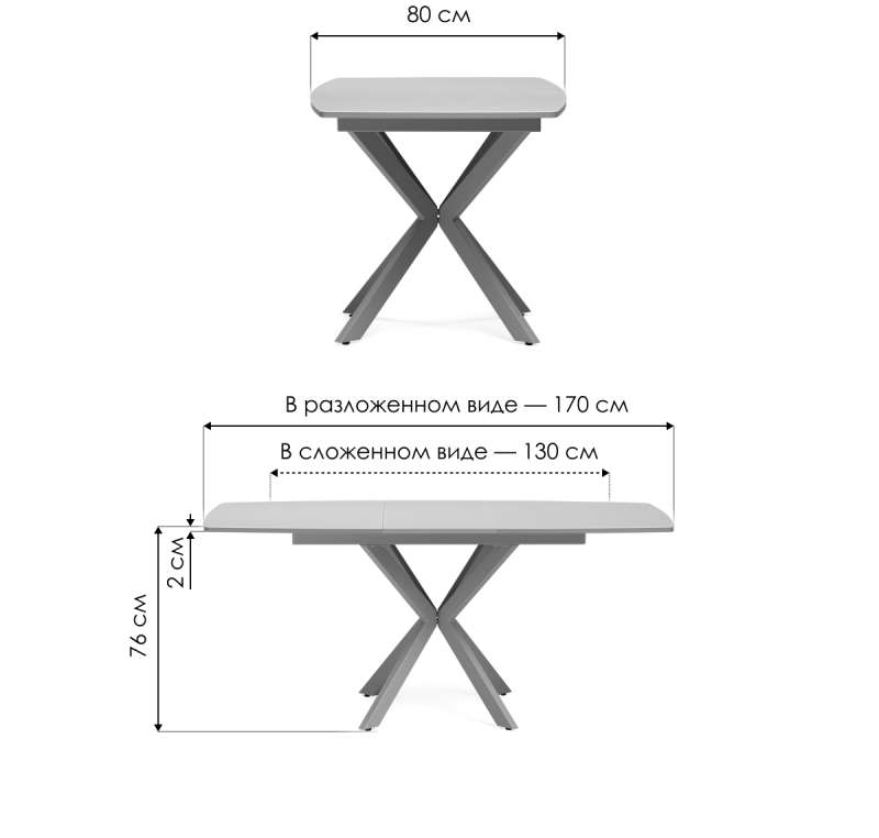 Столешница выполнена из матового стекла. Толщина столешницы: 2 см.